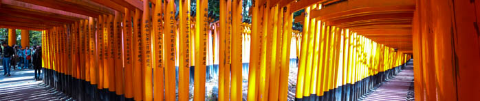 Tout d’abord le temple de Fushimi, à une station de train du château, c’est là que l’on trouve la célèbre montée de toris rouge orangé